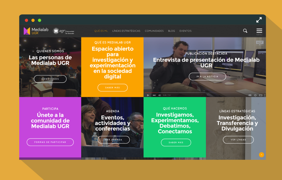 Estamos orgullosos de decir que MediaLab está lejos de ser la típica web de universidad «aburrida» (ejem ; ), con mucho blanco y poco dinamismo. Es como una especie de cajón que ir llenando con iniciativas, estudios y propuestas y para ello, hay que captar la atención de todo el mundo.